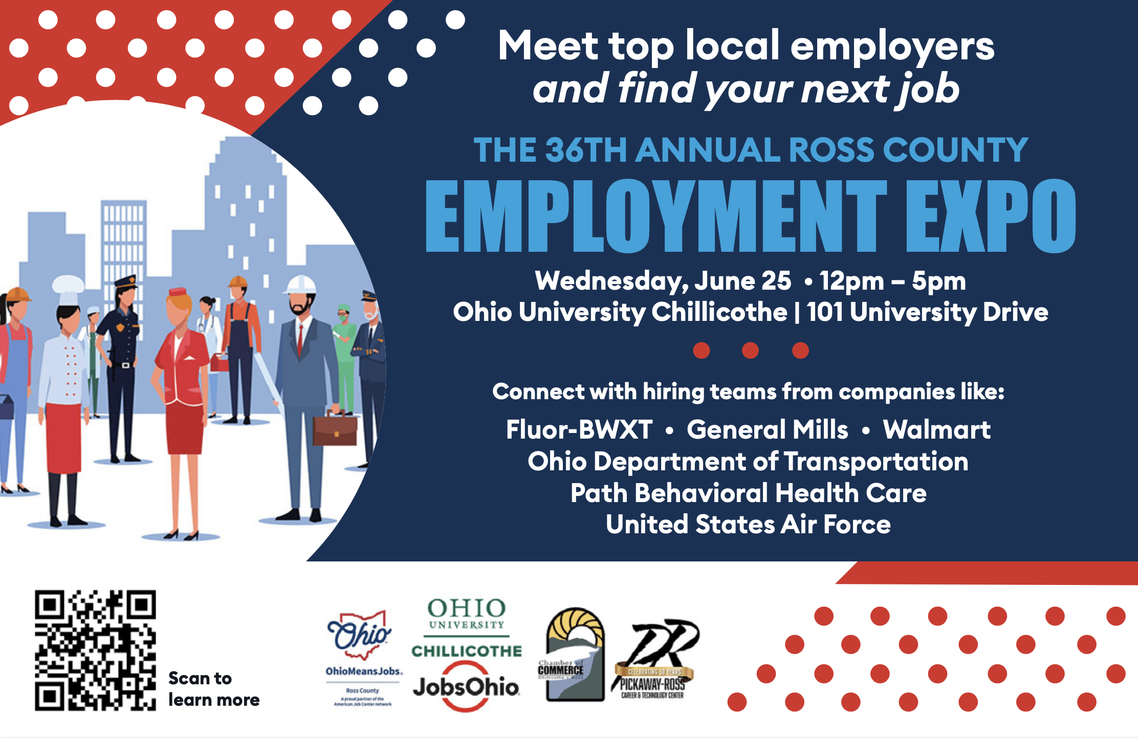 - Join us for the 36th Annual Ross County Employment Expo -This event is the perfect opportunity for businesses and organizations to connect with job seekers, showcase career opportunities, and engage with workforce development partners. Whether you're looking to fill open positions or network with local talent, this is an event you won’t want to miss!