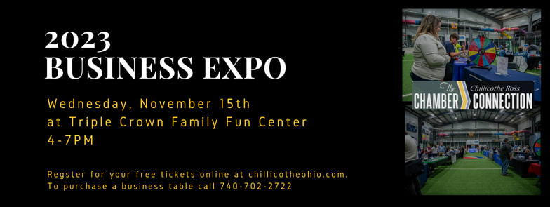 Join the Chillicothe Ross Chamber of Commerce and its investors for our Annual Business Expo. This event gives you the opportunity to meet 50+ businesses while enjoying great food and drink. We will be giving away 50+ door prizes valued at $25 or more! Don't miss out on this once a year opportunity to showcase your business at the Chillicothe Ross Chamber of Commerce's Annual Business Expo. OPEN TO THE PUBLIC from 4-7PM at Triple Crown Family Fun Center. Located at 1 Nancy Wilson Way. General admission is FREE, register online at www.chillicotheohio.com under the Chamber calendar. To register your business to have a table at the Expo, call Bobbi Kellough at 740-702-2722 so that she can take care of the registration for you. Expo tables are $125 for Chamber investors and all vendors must supply a door prize valued at $25. Thank you to our sponsors: Triple Crown Family Fun Center, & G&J Pepsi
