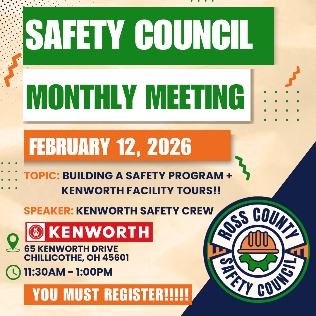 Join us for the February Meeting of the Ross County Safety Council on Feb. 12, 2025 AT KENWORTH Truck Company!!