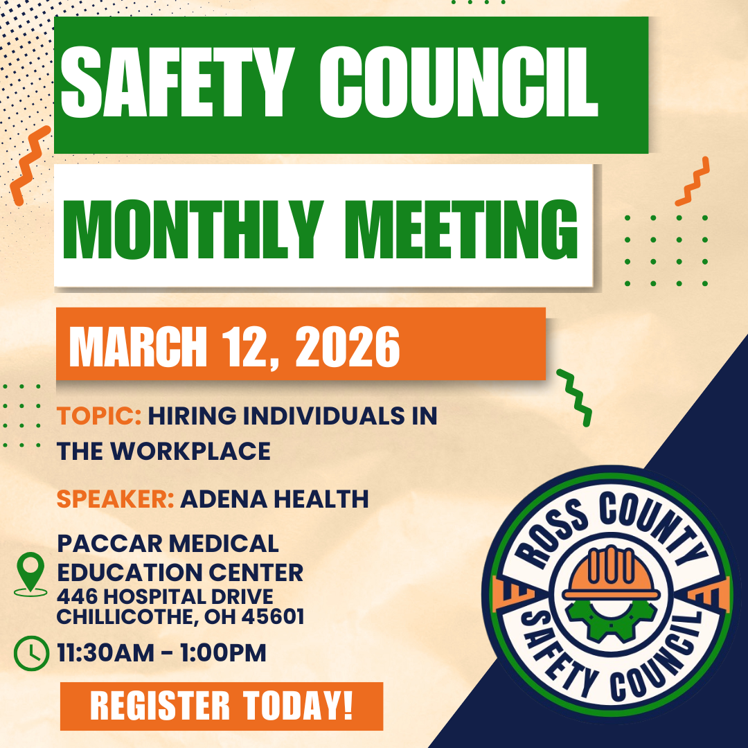 Join us for the Monthly Meeting of the Ross County Safety Council on March 12, 2026.