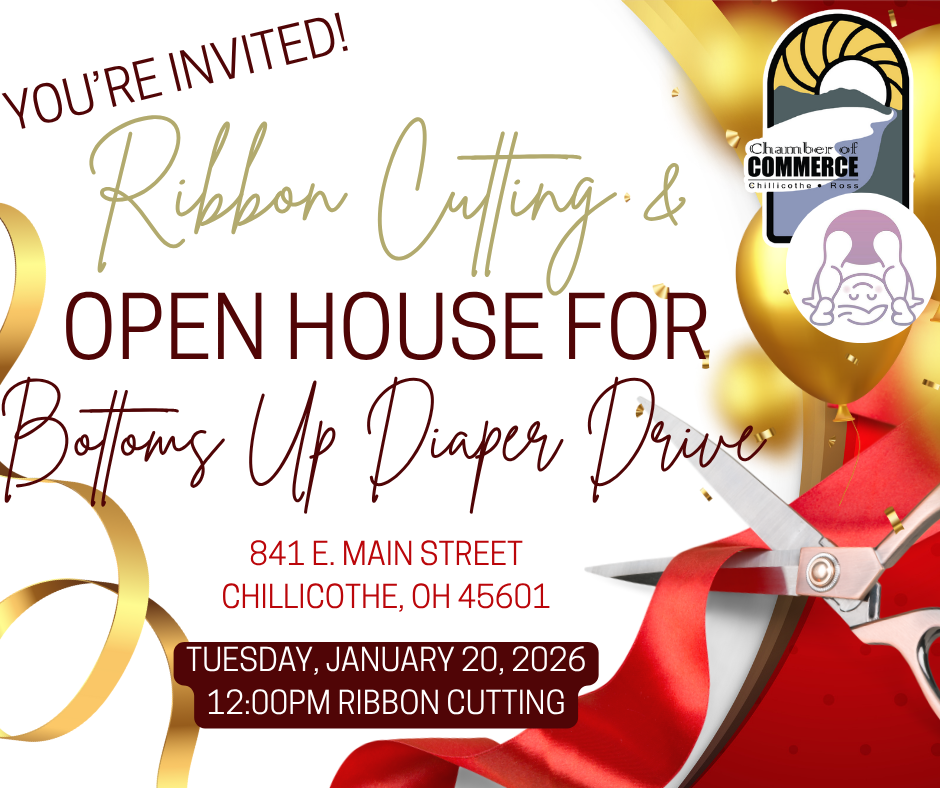 Join the Chillicothe Ross Chamber of Commerce as we celebrate a BIG milestone for Bottoms Up Diaper Drive — the opening of their brand-new, greatly expanded warehouse on Tuesday, January 20th at noon at 841 E. Main Street!