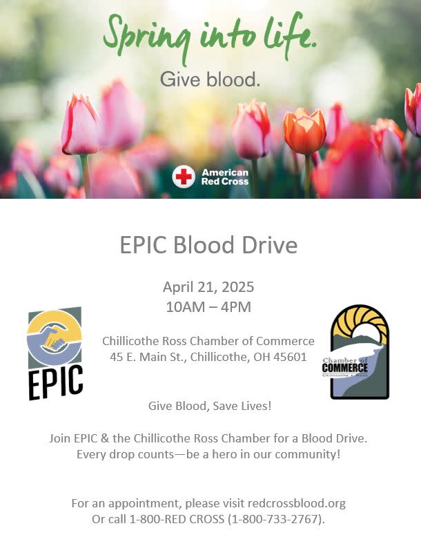 Join the EPIC crew and save lives by donating blood! 🩸 Schedule your appointment today for April 21; available time slots from 10 AM – 4 PM at the Chamber office!