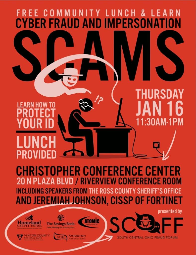 Please join the members of SCOFF (South Central Ohio Fraud Forum) for our first free community lunch & learn on Thursday, January 16th in the Riverview Conference Room at the Christopher Conference Center from 11:30am - 1pm.