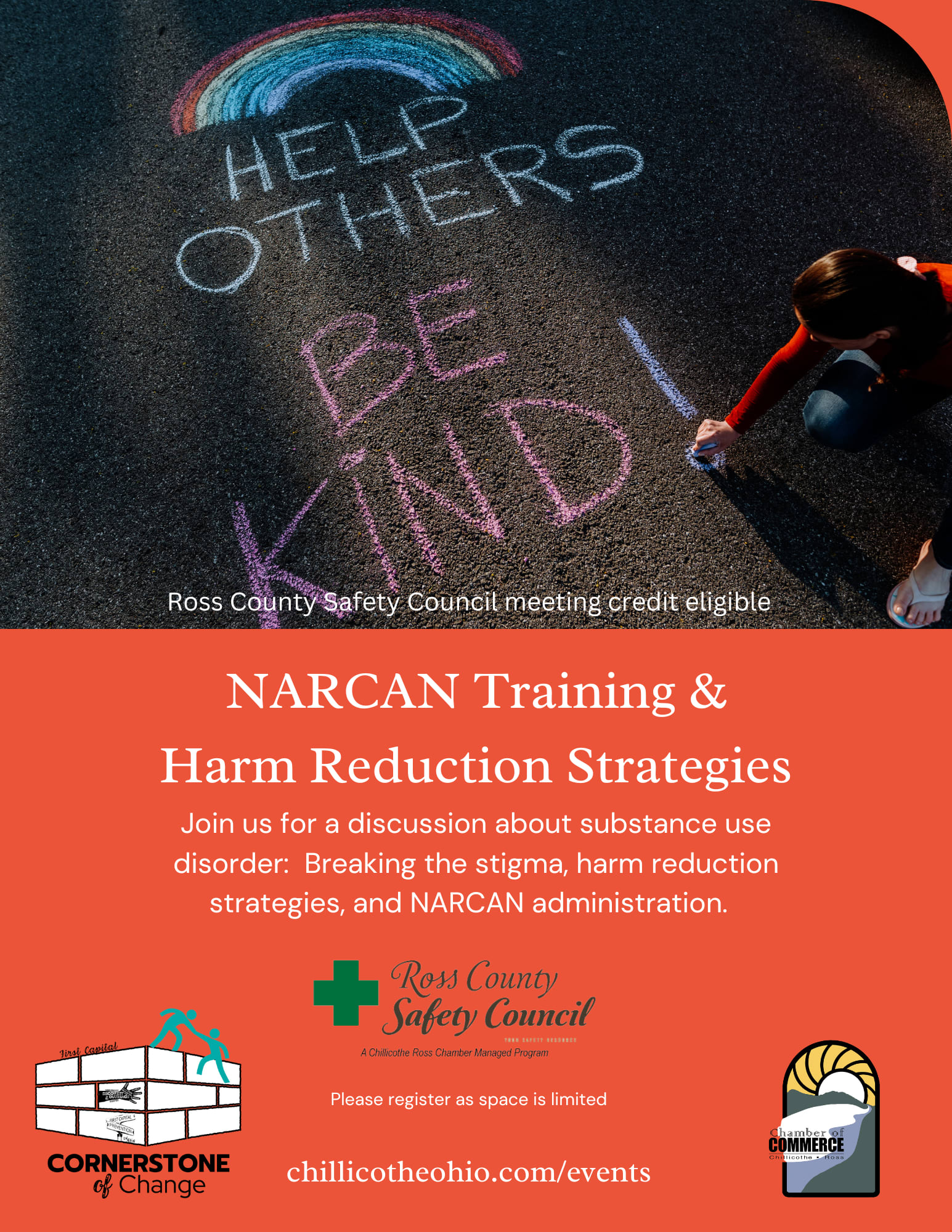 Join us for a discussion about substance use disorder: Breaking the stigma, harm reduction strategies, and NARCAN administration. Facilitated by Stacey Saunders and Christina Arredondo from First Capital Cornerstone of Change. This workshop is sponsored by Ross County Safety Council. If you are a member of the Ross County Safety Council, you may receive 1 meeting credit for attending.
