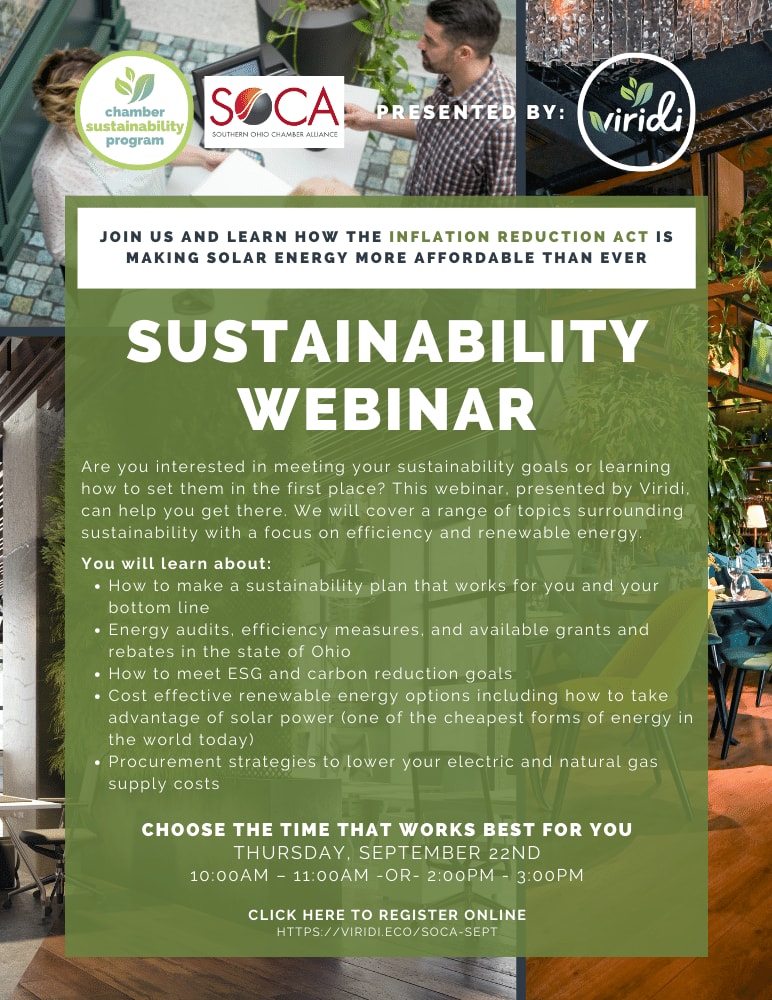Join Chamber Sustainability Program and learn how the Inflation Reduction Act is making solar energy more affordable than ever. There are two sessions at 10 a.m. and 2 p.m.