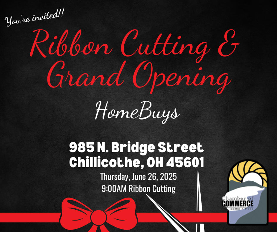 Get ready, Chillicothe! 🎉 You're invited to the official Ribbon Cutting and Grand Opening for our newest retail spot - HomeBuys!