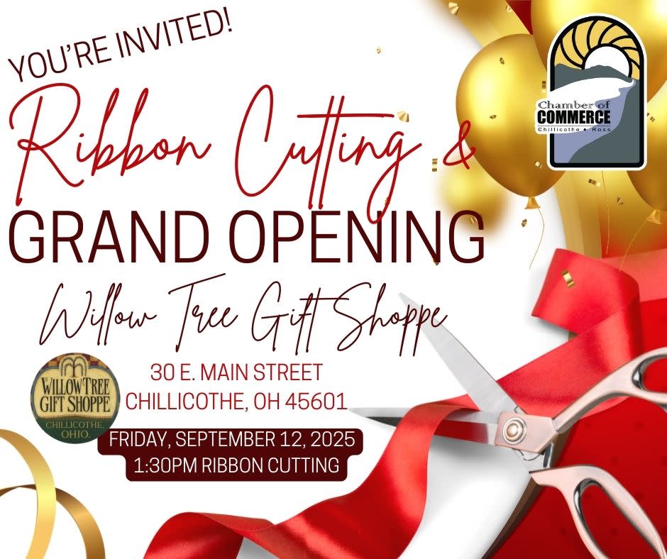 We’re rolling out the ribbon and the red carpet for Willow Tree Gift Shoppe’s Grand Opening and Ribbon Cutting in the heart of Downtown Chillicothe!