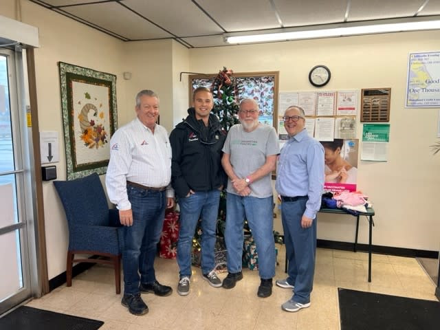 Photo caption: Rick Dearholt (left) and Blake Schaab of American DND stand with Mike Thompson, general manager of the Good Samaritan Food Network, and Michael Throne, president and CEO of the Chillicothe Ross Chamber of Commerce after American DND gave $4,000 to support feeding needy families in Ross County.